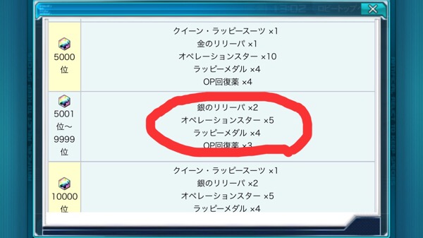 5000位以内ならオペレーションスターが10個なので、3人入れば30個!!!(そんなに甘くないw